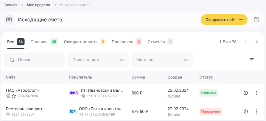 1. Перейдите в раздел «Мои продажи» → «Исходящие счета».